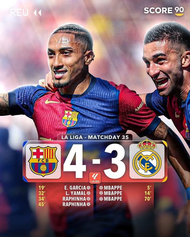 24/25赛季落下帷幕,外媒score90发布24/25赛季最佳比赛投票,欧冠决赛和3场国家德比在列,8场候选比赛中巴萨占5场。吧友们怎么选?
